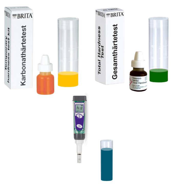 Our coffee engineers perform the simple test using BRITA’s Total Hardness and Carbonate Hardness drop test kits. Using 5ml of their solution and adding your water drop by drop, the number of drops needed to initiate a colour change in the solution equals the number of parts per million.