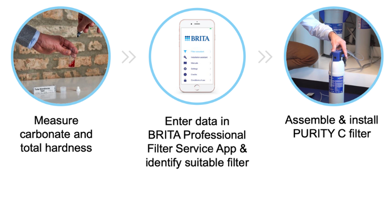 The initial installation is a relatively quick and simple process. However, to be completed properly, it does require the testing kits and access to BRITA’s professional service app. When you are setting up your coffee shop or installing a new machine, we highly recommend having your water tested and getting an experienced engineer to install your filter. For more information or to speak to our engineer team, get in touch!