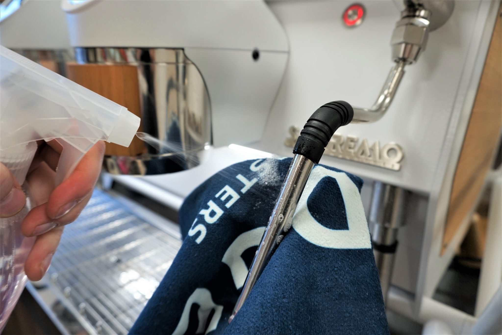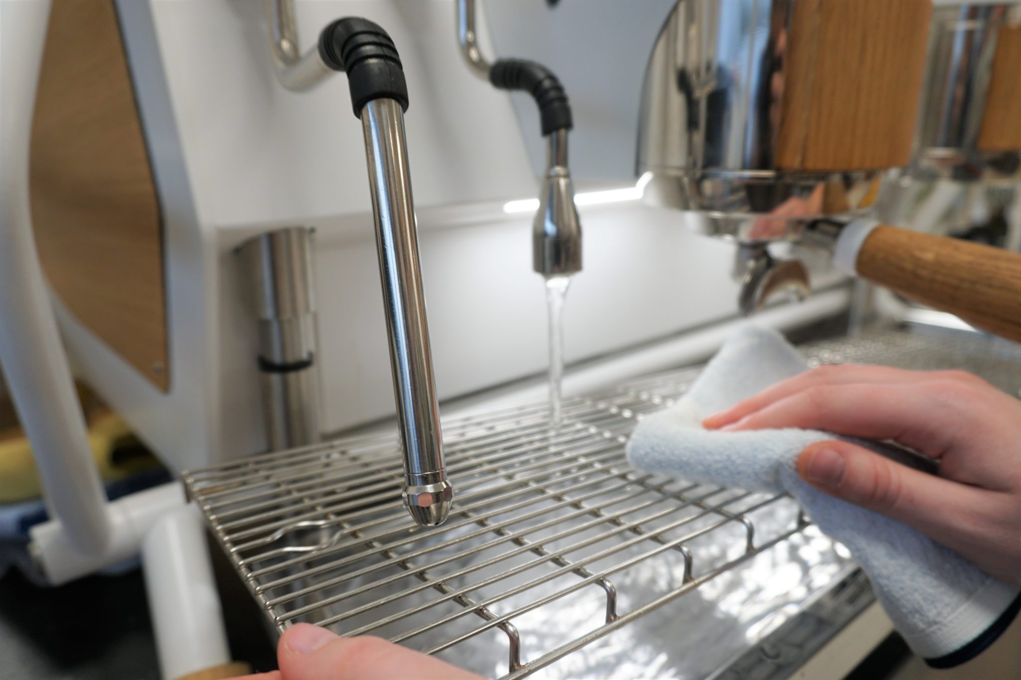 - Wipe the steam wand down with food-safe disinfectant check that the jets are working properly, clearing them out if any are blocked.