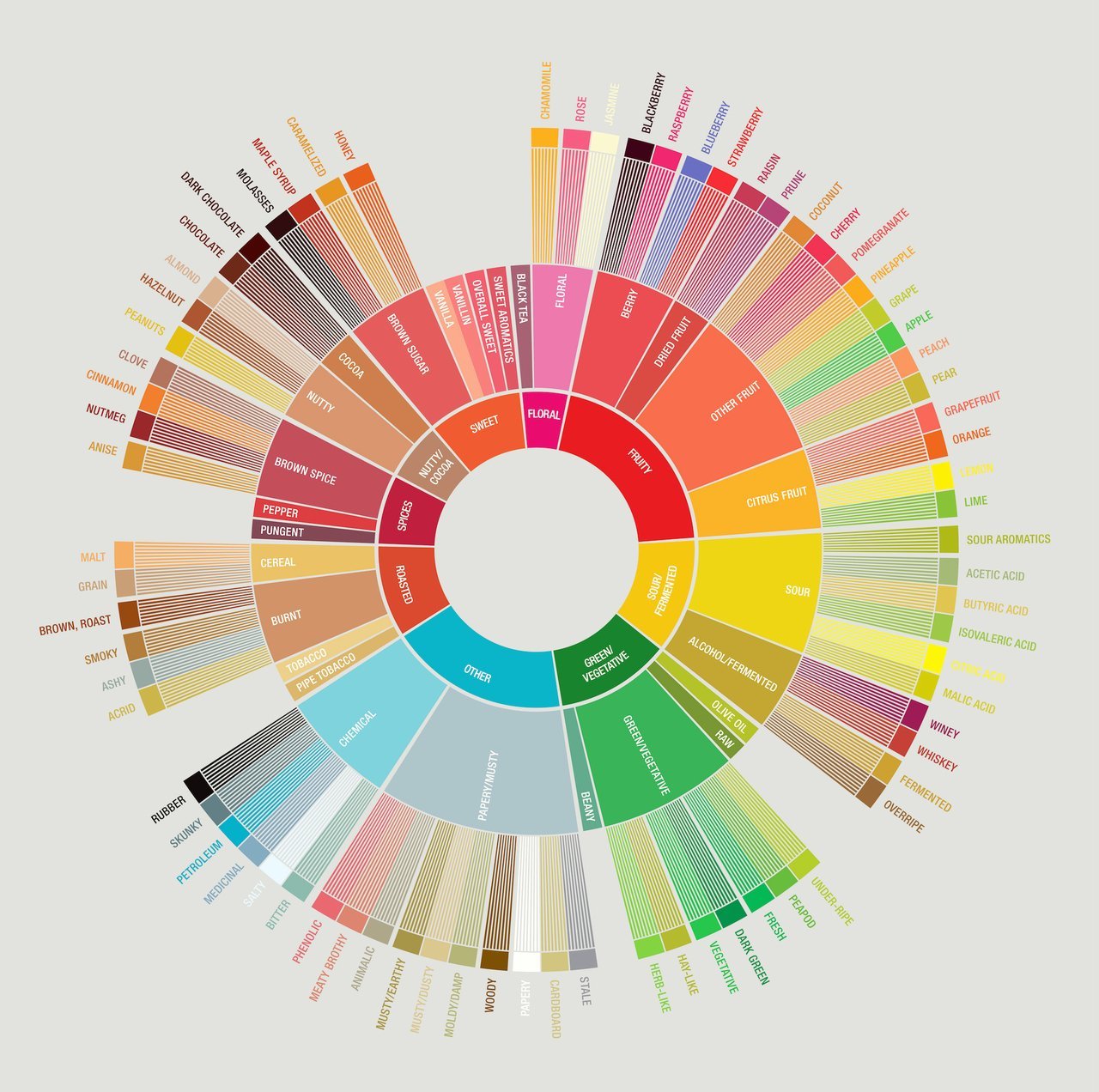 The coffee wheel and the flavours we discern as we drink our coffee are the first step to pairing it with food. The first principle lies in matching complementary flavours. Often though, the delight to be found in enjoying contrasting flavours is overlooked and this is a great shame.