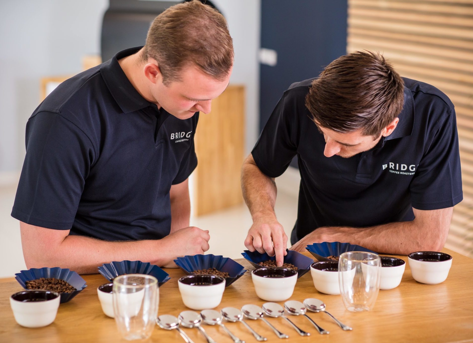 Usually a range of coffees are cupped at the same time to give context and contrast, this may for example be a range of roast profiles of the same coffee or a variety of coffees from the same region. If freshly roasted, the beans are allowed to rest for a couple of days before they are ground. For the most in-depth formal cuppings five samples of each coffee will be separately ground in preparation for the cupping so that the sample is uniformly represented.